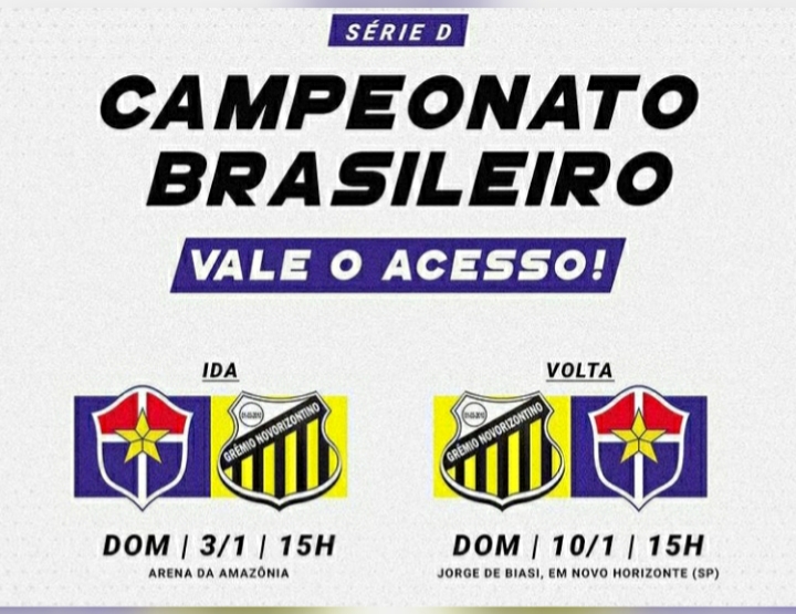 Serão duas partidas: a primeira aqui. A segunda, dia 10 de janeiro em Novo Horizonte – SP, no Estádio Jorge de Biasi.